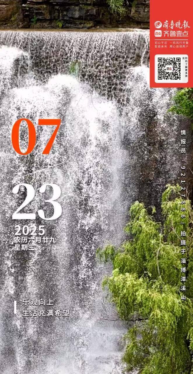 走进淄博潭溪山,一条银色瀑布从悬崖顶直挂下来,像白绸飘在风里。水珠四散,像亮晶晶的细雨,落在脸上,凉丝丝。脚下潭水碧透,映着蓝天和绿树,像一面会晃动的镜子。